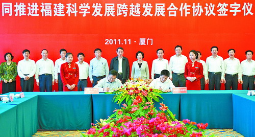 11月3日,中國石油天然氣集團公司與福建省人民政府在廈門簽訂共同推進福建科學發展跨越發展合作協議。