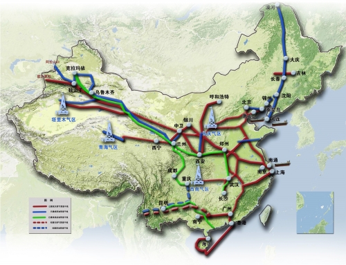 西氣東輸和中緬管道等多條管道都在建設中。