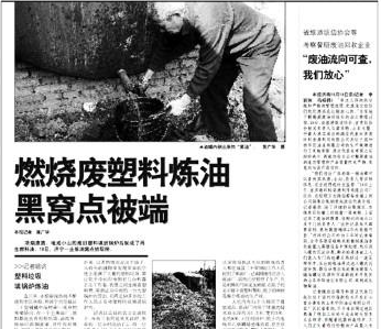廢塑料煉油原理是采取催化裂解的方法,在高溫和特種催化裂解劑的作用下,使聚烯烴大分子斷鏈,產生汽、柴油組分油,并伴有大量的有毒氣體。非法煉油廠死灰復燃,對環境造成了嚴重的污染,危及周邊居民的身體健康,希望有關部門能徹底查處。
