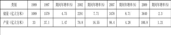 表2 1989-2009年巴西天然氣(剩余可采)儲量和產(chǎn)量變化