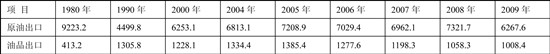 表1給出了沙特1980年以來,特別是近年原油和油品出口量的變化,從中可以看出: