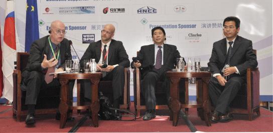 小組討論:從左至右依次為中澳煤層氣能源公司執行主席Gavin Harper、Tudor Pickering Holt & Co聯合總裁Maynard Holt、國家能源咨詢委專家,中聯煤公司總顧問孫茂遠、國家安全生產監督管理總局煤炭信息研究院院長黃盛初