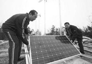春節(jié)長假一過,寧波市寧海強(qiáng)蛟鎮(zhèn)的中央山島就熱鬧起來,工人通過漁船把太陽能板和風(fēng)機(jī)的零件運(yùn)上這個(gè)小海島,在山頂平臺上裝配、調(diào)試。這將是寧波海島首度使用風(fēng)能和太陽能發(fā)電,設(shè)備提供商“銀風(fēng)能源”總經(jīng)理張建林說,一周后,海島居民和工作人員就能用上“自然電”了。