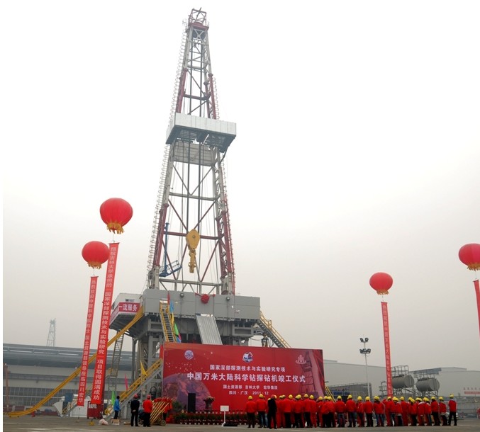 四川宏華集團公司生產制造,所有部件實現國產化,12月19日通過國家深部探測技術與實驗研究專項辦公室和吉林大學組織的評審驗收。由于先進的設計理念和加工工藝,該鉆機將具有運行成本低、能耗低、效率高、抗高溫的特點,搶占了國際鉆探裝備的制高點,具備實施萬米超深井科學鉆探的能力,成為深部探測和大陸科學鉆探的“利器”。