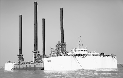 “龍源振華2號”平臺集風機運輸、吊裝、打樁、安裝于一體,具有800噸的全回轉起重能力,最深可對水下30米進行作業,率先采用先進的單管樁施工工藝,7天時間可安裝1臺風機,遙遙領先目前國內平均30天的安裝周期。同時,憑借其配備的先進打樁裝備和大噸位起重能力,最大可安裝6兆瓦大功率風機,具有廣闊的市場前景。