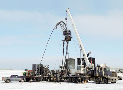 由杰瑞制造的中國最大管徑連續(xù)油管設(shè)備在加拿大作業(yè)現(xiàn)場