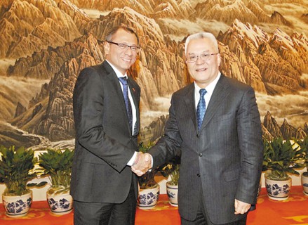 圖為中國石油集團董事長周吉平會見厄瓜多爾副總統格拉斯