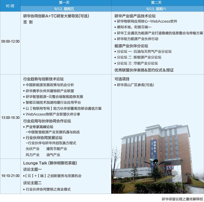 研華科技—2014年9月12日-13日,全球領導品牌研華科技與業界先進將于昆山(研華協同創新研發中心A+TC暨智慧城市與物聯網應用展示中心)共同舉辦“研華『云』+『端』能源高峰論壇”,會議以“新能源、油氣與節能物聯產業開發新契機”為主題,我們期盼通過此次會議,與您一同探討物聯網產業中【云】+【端】技術對能源產業的發展與挑戰。
