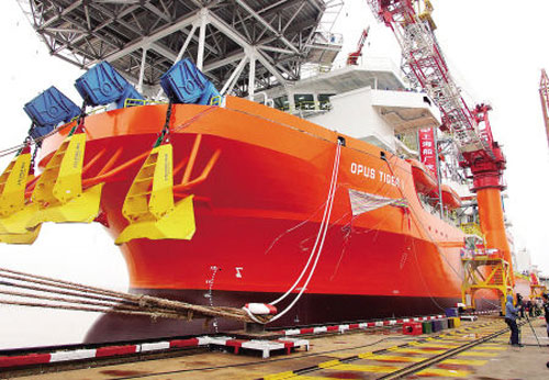 中國建成首艘擁有全部知識產權的深海鉆井船,并于8日正式命名為“華彬OPUS TIGER1”號(老虎一號)。
