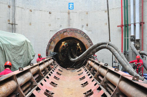 工程建設(shè)期間,盾構(gòu)項(xiàng)目部先后攻克了砂層盾構(gòu)始發(fā)掘進(jìn)、建筑物密集區(qū)域穿越、帶壓進(jìn)倉檢查更換刀具、超大粒徑卵石和強(qiáng)度高達(dá)180兆帕硬巖地層掘進(jìn)五大難關(guān)。