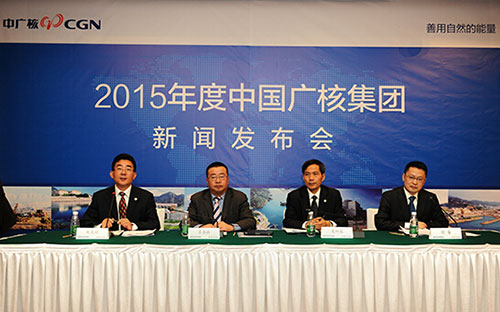 2015年1月20日,中廣核2015年度新聞發(fā)布會(huì)在深圳深航國際酒店召開。圖從左至右依次為中廣核集團(tuán)新聞發(fā)言人胡光耀;中廣核電力股份公司副總裁蘇圣兵;中廣核工程公司副總經(jīng)理夏林泉;中廣核科技委副秘書長舒睿。