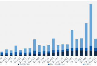 摘要: 2017年第三季度,公共事業(yè)規(guī)模項(xiàng)目占光伏裝機(jī)總量的51%;非戶用光伏項(xiàng)目包括工商業(yè)發(fā)電系統(tǒng)、公益項(xiàng)目和社區(qū)太陽(yáng)能項(xiàng)目裝機(jī)量為481MW,同比增長(zhǎng)22%。加利福尼亞州、馬薩諸塞州和紐約州第三季度都實(shí)現(xiàn)強(qiáng)勁增長(zhǎng),同時(shí)明尼蘇達(dá)州受社區(qū)光伏項(xiàng)目...